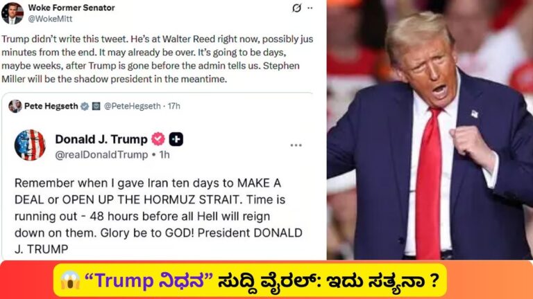 📍 ನ್ಯೂಯಾರ್ಕ್: ಇರಾನ್ಗೆ ಹಾರ್ಮುಜ್ ಜಲಸಂಧಿಯನ್ನು ತೆರೆಯಲು 48 ಗಂಟೆಗಳ ಗಡುವು ನೀಡಿದ ನಂತರ Donald Trump ಅವರ ಆರೋಗ್ಯದ ಬಗ್ಗೆ ಸಾಮಾಜಿಕ ಜಾಲತಾಣಗಳಲ್ಲಿ ಭಾರೀ ಚರ್ಚೆಗಳು …