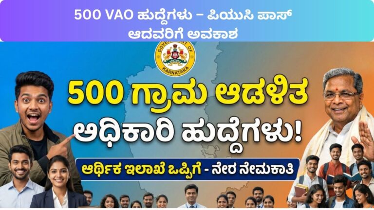 ಕಂದಾಯ ಇಲಾಖೆಯಲ್ಲಿ 500 ಗ್ರಾಮ ಆಡಳಿತ ಅಧಿಕಾರಿ ಹುದ್ದೆಗಳು – ಸರ್ಕಾರಿ ಉದ್ಯೋಗಾಕಾಂಕ್ಷಿಗಳಿಗೆ ದೊಡ್ಡ ಅವಕಾಶ ರಾಜ್ಯದಲ್ಲಿ ಸರ್ಕಾರಿ ಉದ್ಯೋಗದ ನಿರೀಕ್ಷೆಯಲ್ಲಿ ಇರುವ ಯುವಜನತೆಗೆ ಬಹು ದಿನಗಳಿಂದ …